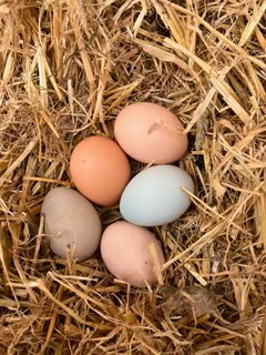 Enjoy a rainbow of shell colors and rich, dark-yellow yolks that only come from hens raised on pasture and a wholesome diet.